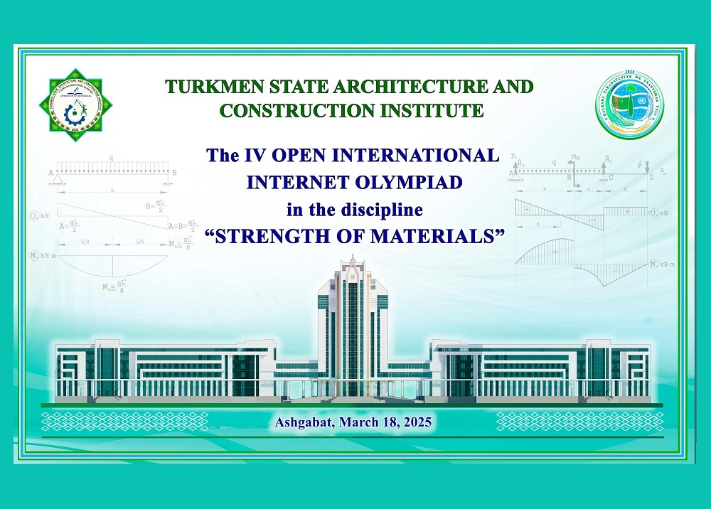 18 марта 2025 года студенты третьего и четвертого курсов строительного факультета АГАСУ Артем Горбачев, Юрий Ким и Алина Галиева приняли участие в IV открытой Международной студенческой интернет-олимпиаде по дисциплине «Сопротивление материалов» в Туркменском государственном архитектурно-строительном институте.