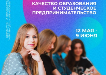 На платформе «Неравнодушный человек» проходит опрос «Качество образования и студенческое предпринимательство» среди студентов, анкетирование преподавателей и административно-управленческого персонала. Цель исследования – помочь повысить качество жизни граждан и реализовать важнейшие общественные...